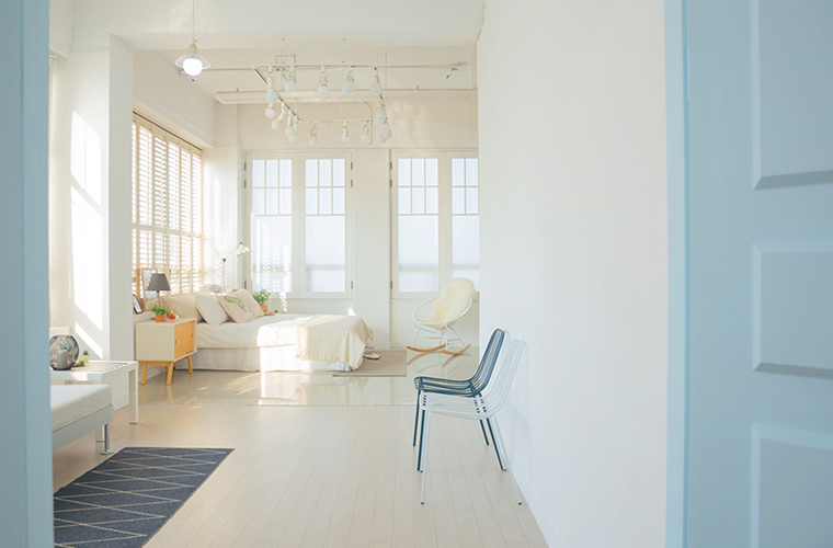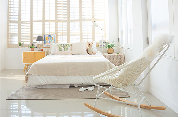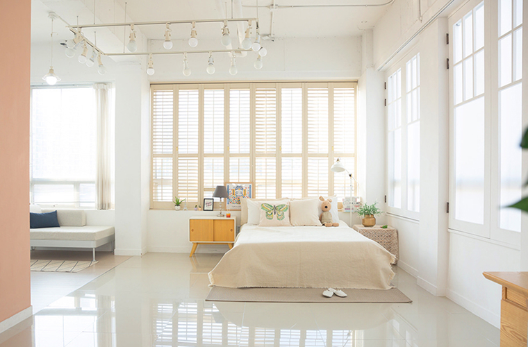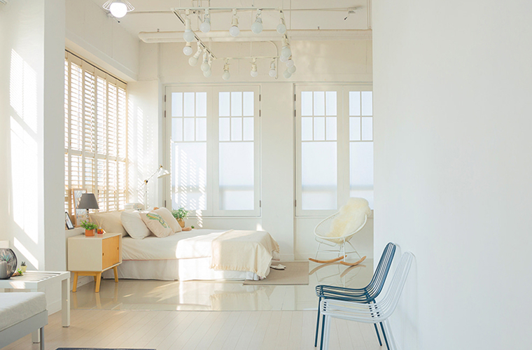 바닥재는 화이트 대리석, 화이트 강화마루가 반반 이루고 있어 분위기가 화사하며