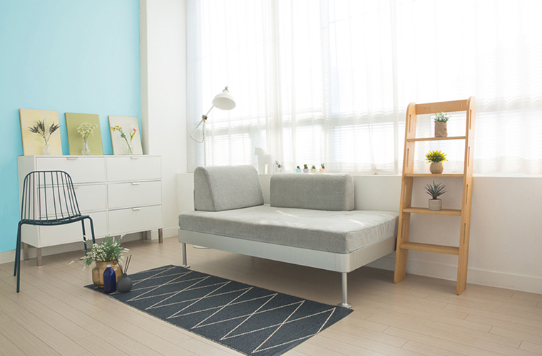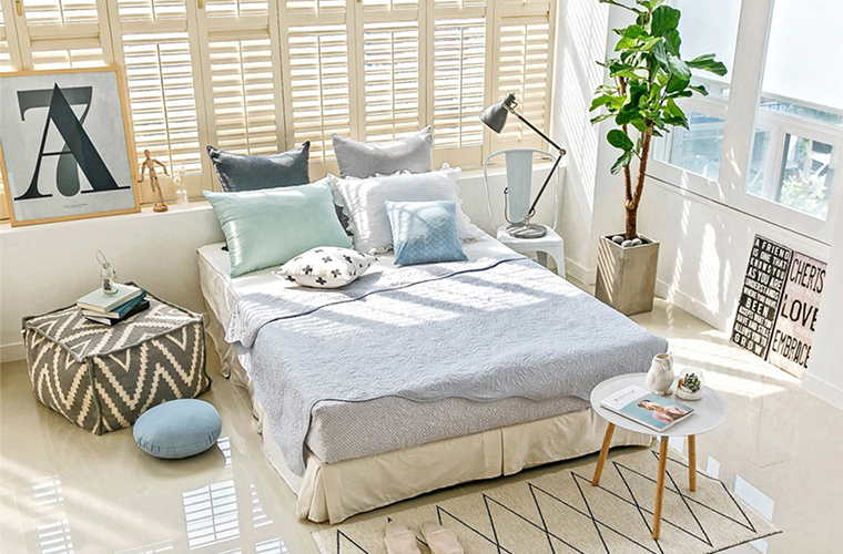 바닥재는 화이트 대리석, 화이트 강화마루가 반반 이루고 있어 분위기가 화사하며
